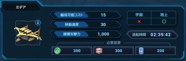 シーズン2になって上位3種の性能と建造費用が変更になった。